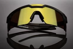 – A replaceable, impact resistant, full coverage shield lens with a seamless lens lock & support system along the protective side shields. The lens is accented with a bold brow window across the top of the Nylon Polyamide frame that give these an aesthetic unlike anything seen before.