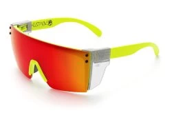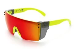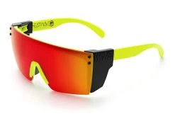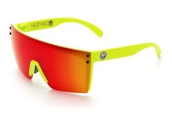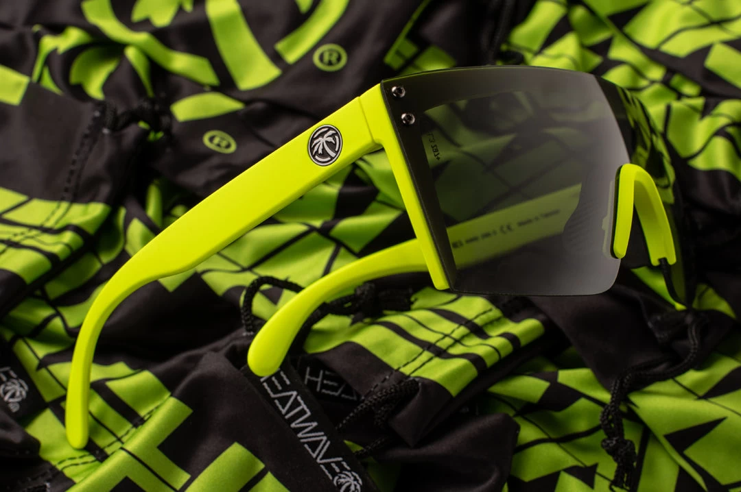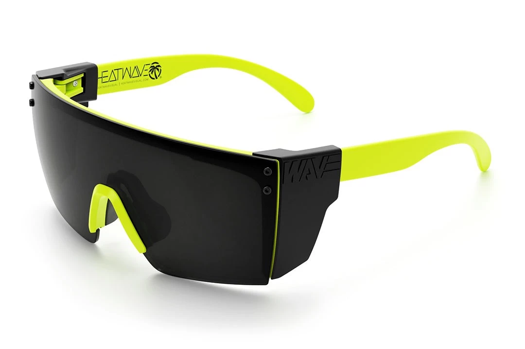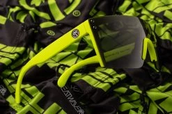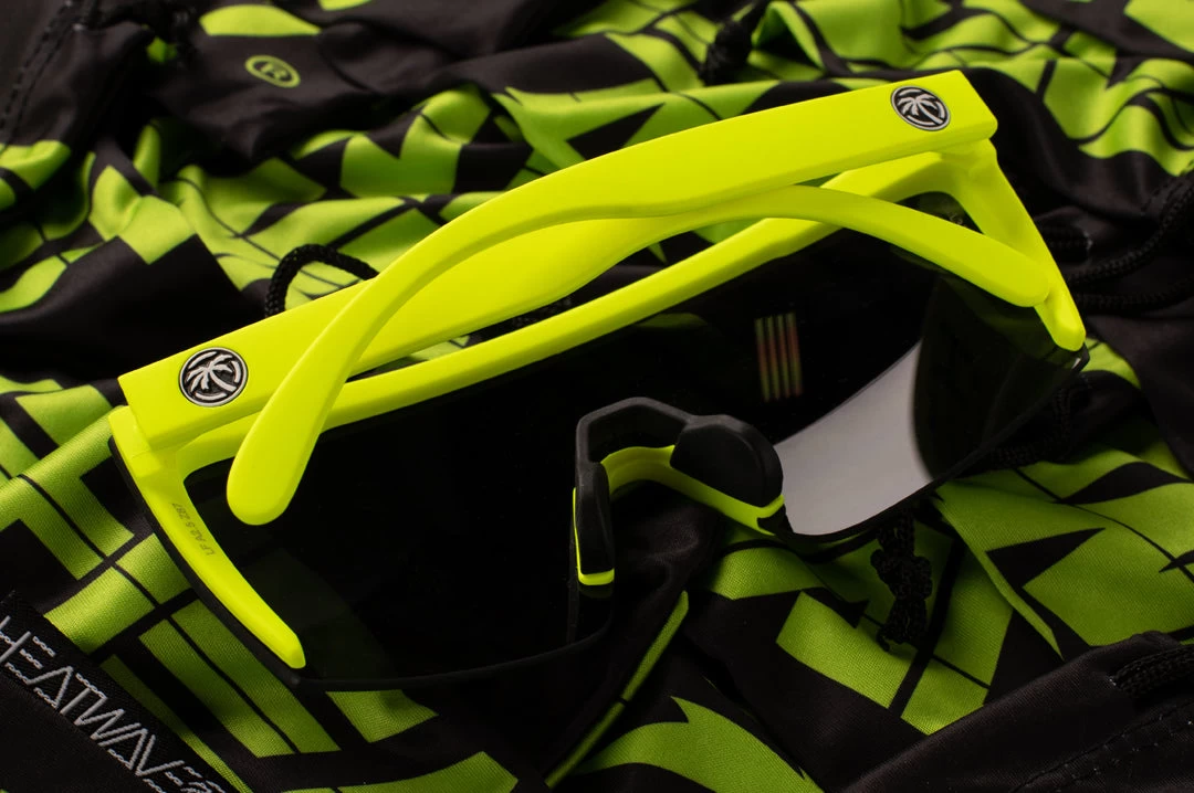 -Matte Hi Vis Yellow frames & temples with metal inlay logos