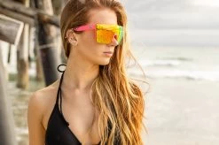 The Standup Setup is built up with a NEON pink frame, Spectrum lenses and white highlights. On the arms you will find the Stand Up graphic on a unique and bold, neon pink arm.