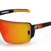 Light and Flexible: The minimal frame design not only makes the Vector the LIGHTEST Heat Wave frame to date at only 1.3 oz., but also enables them to have outward FLEX allowing them to be more adaptable, and comfortably fit around the head.The Vector uses a replaceable (tool free) shatter resistant mass-impact rated 2mm thick cylindrical shield lens, that is visually broken in two with a louvered nose bridge that locks the lens in place. The rest of the frame is obscured from view behind the lens, where you will find two minimal lens clips protruding through the lens that further secure the lens to the frame’s side shields.